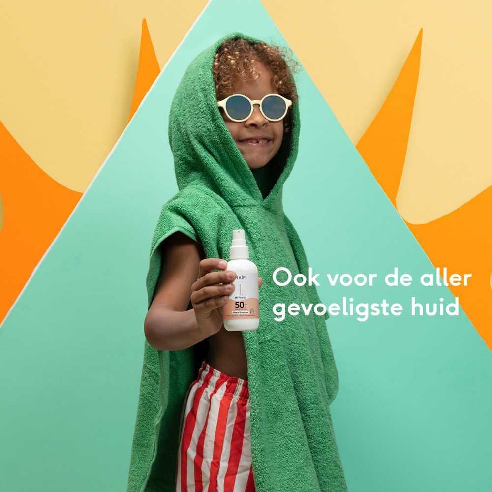 Naïf Baby&Kids High Protection Mineral Sunscreen SPF 50 0% Perfume ist ein natürlicher Sonnenschutz für Babys und Kinder. Die Sonnencreme mit SPF 50 enthält mineralische Filter, sodass sie die Haut sofort schützt und keinen weißen Schleier hinterlässt. Die Sonnencreme ist allergenfrei und 100% vegan. Sie bietet außerdem sofortigen Schutz und die Sonnencreme ist in einer nachhaltigen biobasierten Verpackung verpackt. Die Creme ist parfümfrei und lässt sich dank des einfachen Sprays leicht auftragen.