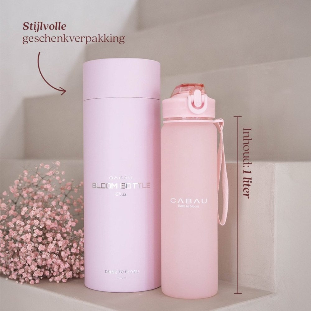 Die Cabau Lifestyle Bloom Glasflasche ist eine langlebige, wiederbefüllbare Glaswasserflasche. Diese 1-Liter-Glasflasche ist aus robustem Borosilikatglas gefertigt, hat einen praktischen Flip-Top-Trinkauslauf und wird in einer luxuriösen Geschenkbox verpackt. Dank der einzigartigen Drink-to-bloom-Anzeige kannst du genau sehen, wie weit du mit deiner Wasseraufnahme bist - und dich selbst motivieren, jeden Tag gut auf deinen Körper aufzupassen.
