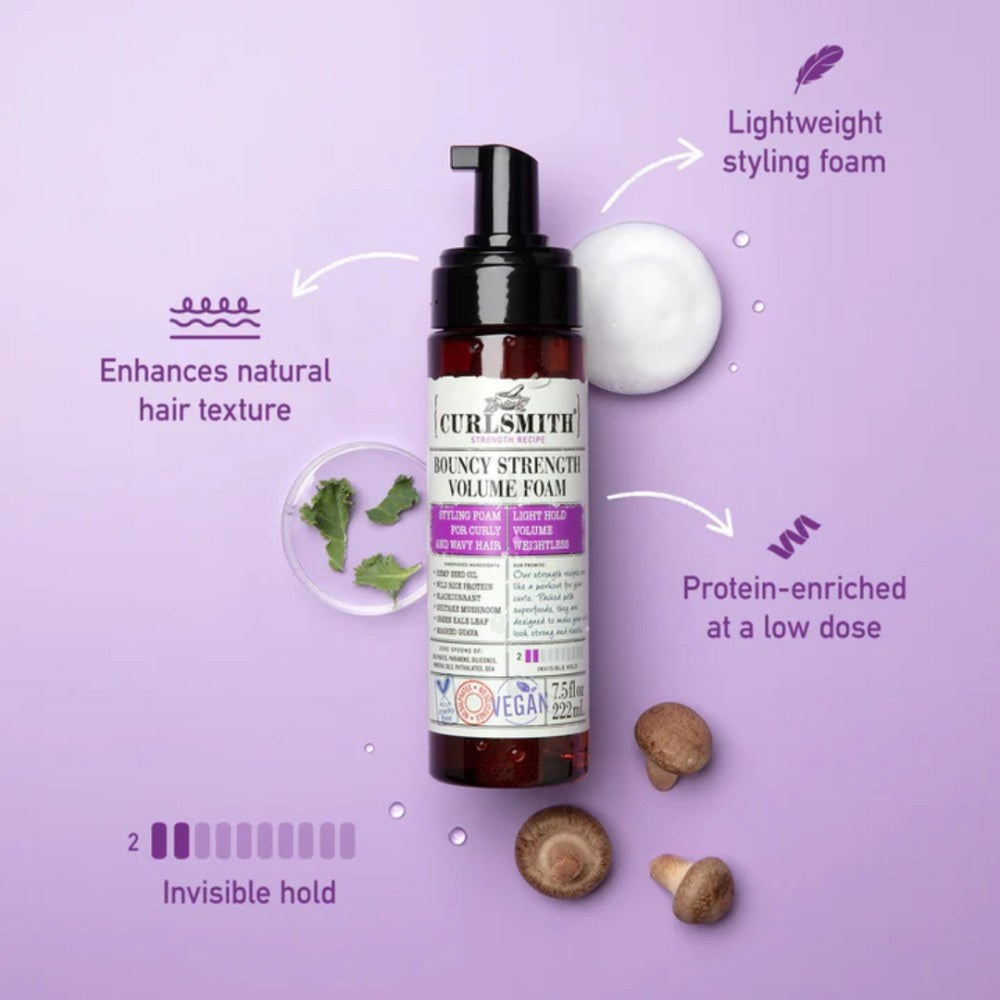 Was sind die Hauptmerkmale des Curlsmith Bouncy Strength Volume Foam?