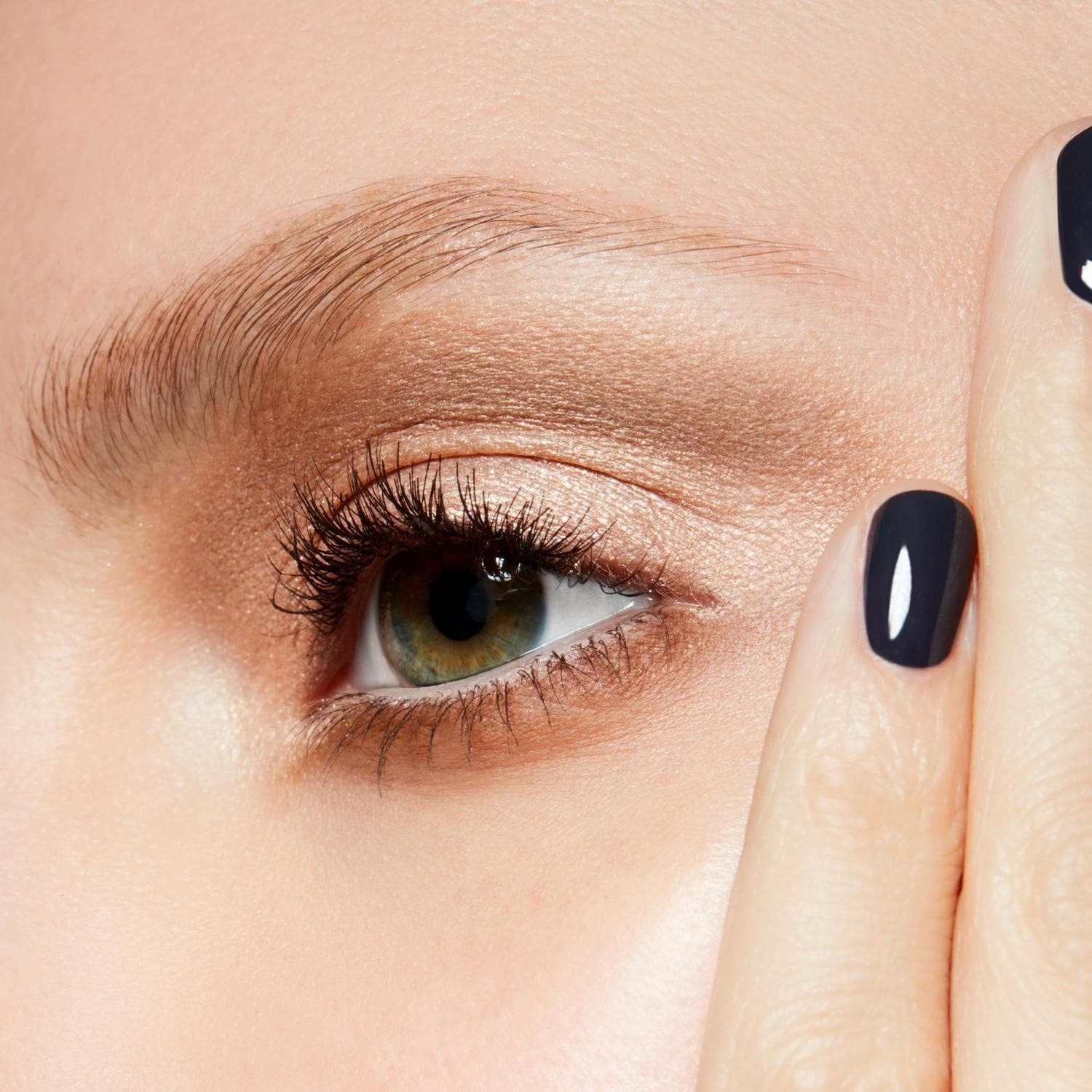 Trage den Lidschatten mit den Fingern, einem Pinsel oder einem Schwämmchen auf das Augenlid auf und verblende ihn, bis du das gewünschte Ergebnis erzielst.
