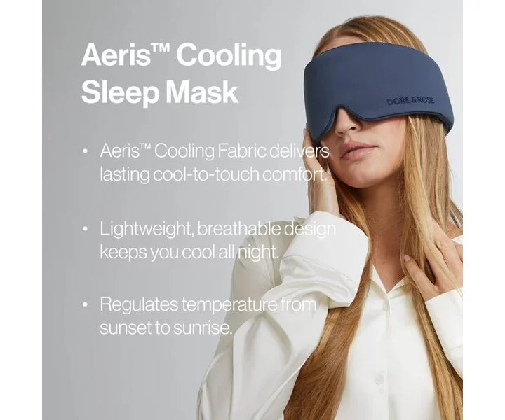 Der Stoff ist Aeris Cooling Fabric, der dich die ganze Nacht kühl hält. Der Stoff ist mit Silberionen angereichert, die einen antibakteriellen Schutz bieten. Er reduziert nächtliches Schwitzen und macht die Haut weich. Der Stoff sorgt für ein sofortiges Kühlungsgefühl und blockiert gleichzeitig 100 % des Lichts, sodass du schneller einschlafen und länger schlafen kannst. Es wurde entwickelt, um das Gesicht zu beruhigen, müde Augen abzuschwellen und eine gesunde Haut in der Nacht zu unterstützen.