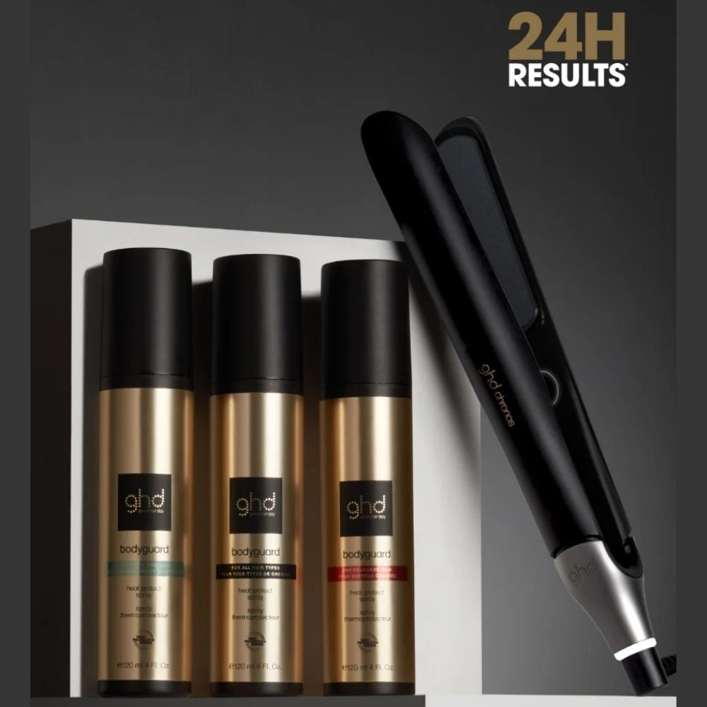 1. Tragen Sie zunächst ein Hitzeschutzspray auf (z. B. das GHD Bodyguard Heat Protection Spray ).