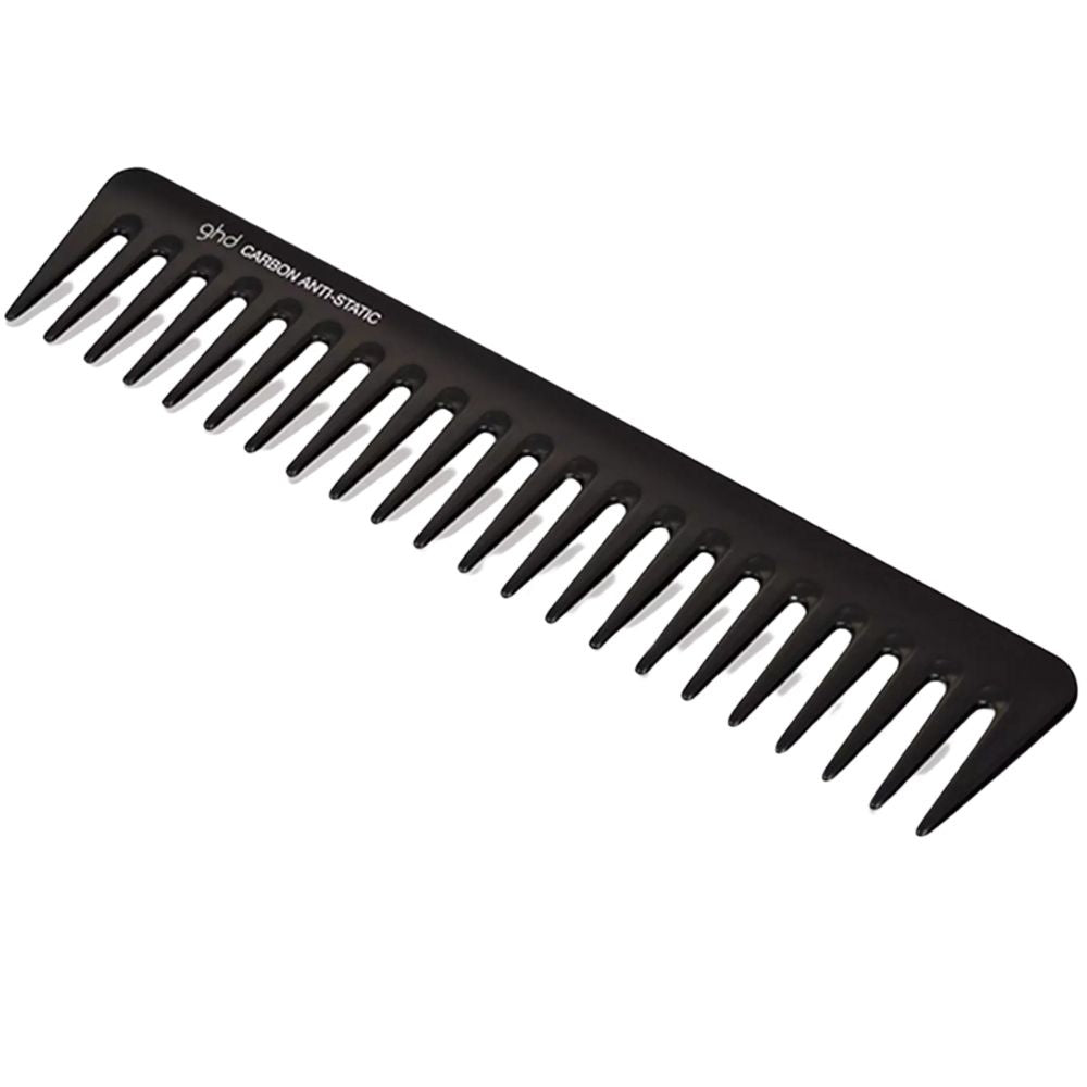 Der GHD Detangling Comb ist der ultimative Kamm zum sanften Entwirren von nassem, sensibilisiertem oder lockigem Haar, ohne es zu schädigen. Dank seiner breiten, antistatischen Zinken gleitet dieser Kamm mühelos durch Ihr Haar, selbst nach dem Duschen. Der Kamm wurde speziell entwickelt, um Haarbruch zu verhindern. Er ist außerdem hitzebeständig und somit perfekt mit Styling-Tools kompatibel.