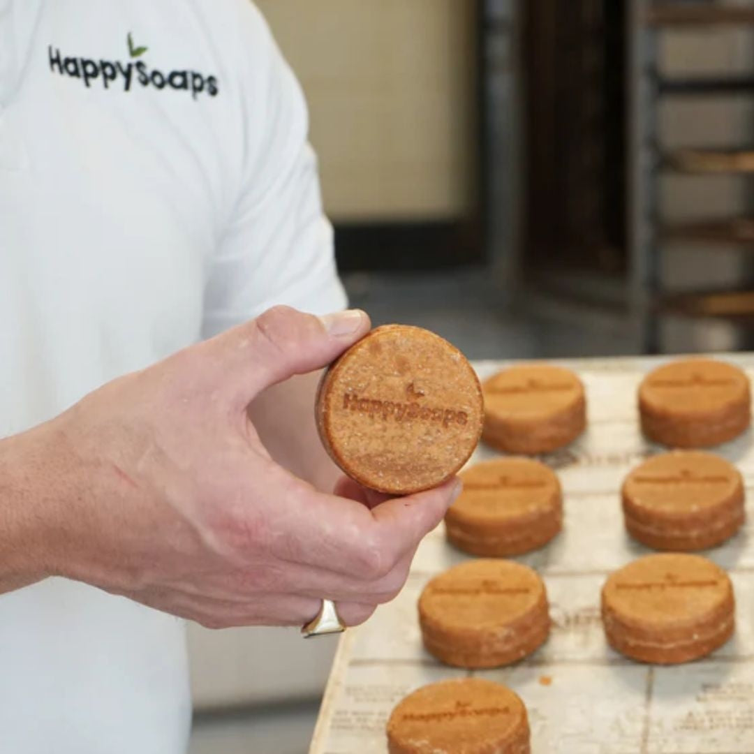 Wusstest du, dass ein HappySoaps-Stück 3 Shampoo- oder Seifenflaschen entspricht, gut für deinen Geldbeutel und für die Umwelt!