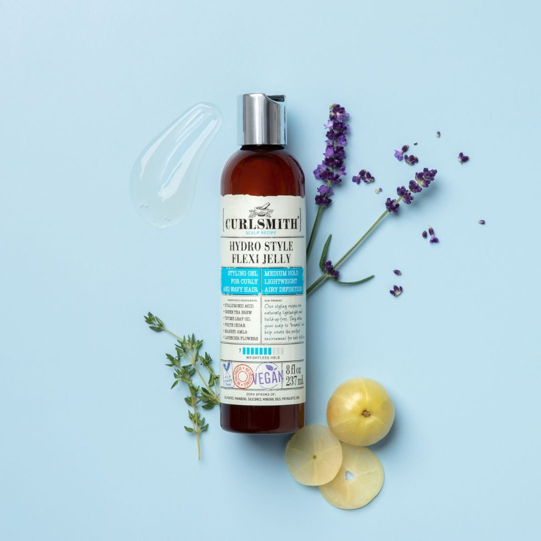 Das Curlsmith Hydro Style Flexi Jelly bietet die perfekte Balance aus Halt und Weichheit – ideal für ein natürliches Finish.