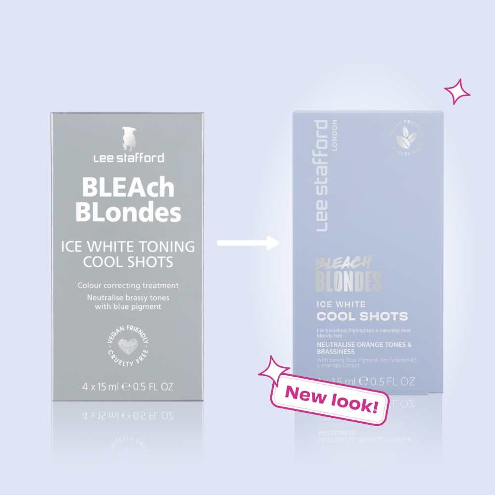Die Lee Stafford Bleach Blondes Ice White Toning Cool Shots sind in 4 Packungen à 15 ml erhältlich