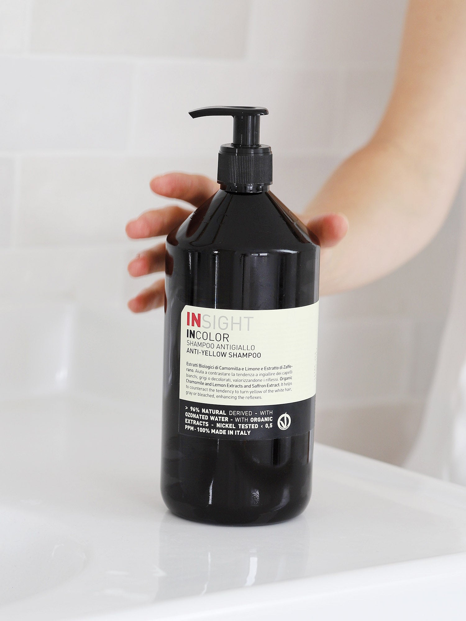 Insight Anti-Yellow Shampoo reduziert den Gelb- und Goldschimmer in Ihrem Haar. Dieses Shampoo hilft, weißes, graues und gebleichtes Haar zu stärken und aufzufrischen und verhindert die Tendenz zum Vergilben. Das Shampoo reinigt sanft und macht Ihr Haar weich und glänzend. Es enthält Farbstoffe, die für die Wirkung des Produktes funktionell sind. Das Shampoo enthält Camomilla Bio-Extrakt, der Ihr Haar beruhigt. Es enthält auch Safran-Extrakt, der Ihrem Haar Feuchtigkeit spendet, und Bio-Zitronenextrakt reinigt Ihr Haar.
