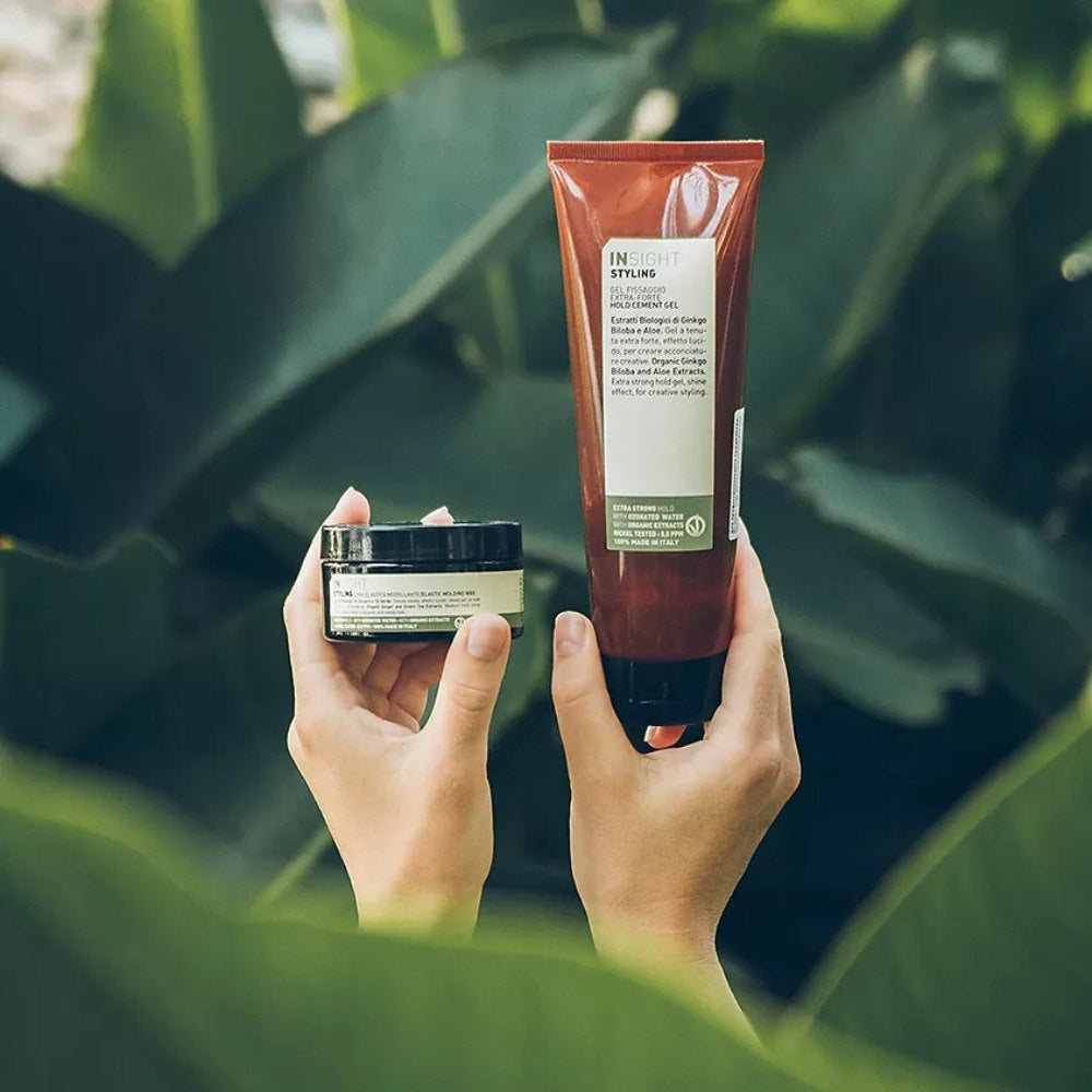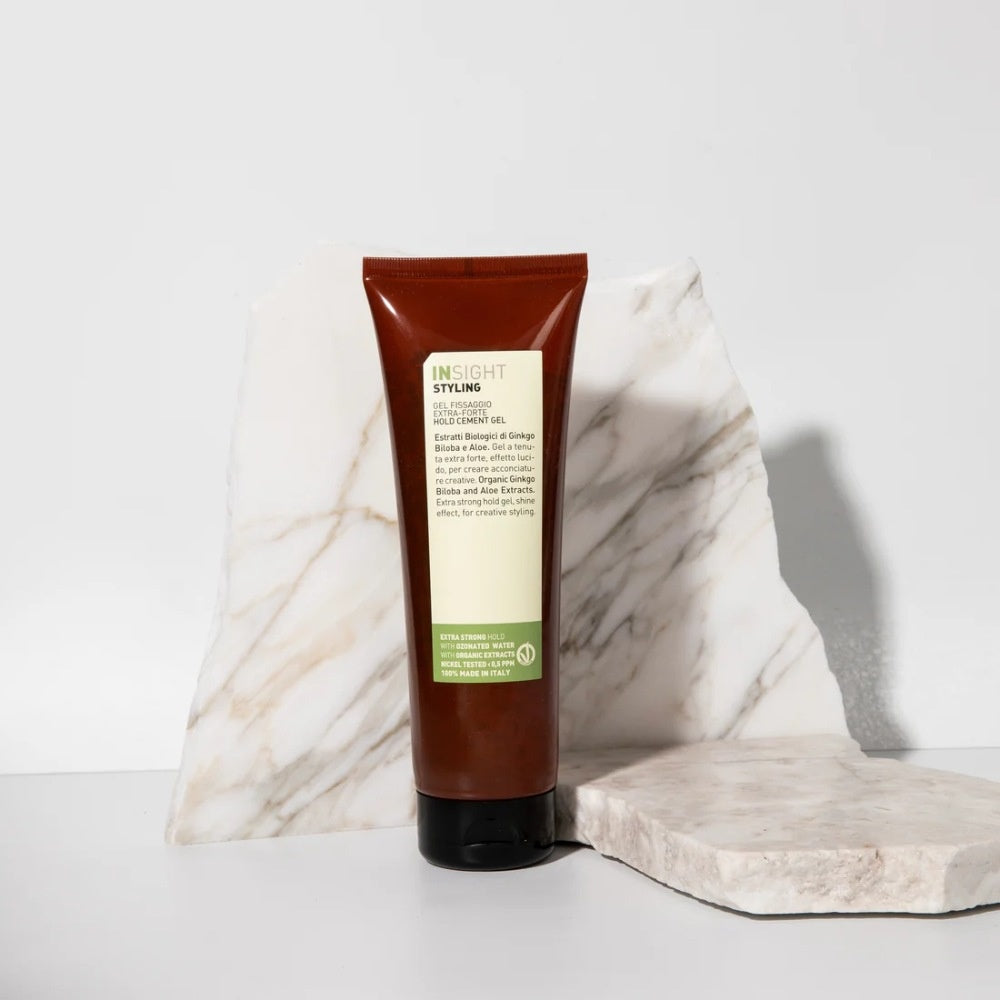 Das Insight Styling Hold Cement Gel verleiht Ihrem Haar Volumen und Festigkeit und bewahrt gleichzeitig seine Elastizität und Flexibilität. Suchen Sie nicht weiter, denn Insight Hold Cement Gel ist genau das Richtige für Sie! Das feine Gel verleiht Ihrem Haar Feuchtigkeit und Glanz und lässt es frischer und gesünder aussehen. Durch den starken Halt des Gels lässt sich Ihr Haar leicht stylen und bleibt den ganzen Tag über in Form. Insight ist sehr bekannt für die vielen natürlichen Inhaltsstoffe, die in den Produkten verarbeitet werden und sich auch in diesem Produkt wiederfinden. Es enthält zum Beispiel den organischen Extrakt des Ginkgo biloba, der dem Haar Elastizität und Flexibilität verleiht. Der Bio-Aloe-Extrakt spendet Feuchtigkeit und regeneriert das Haar, während er die gereizte Kopfhaut sofort beruhigt. Das Gel ist in der Lage, die üppigsten Frisuren den ganzen Tag über zu unterstützen und gleichzeitig eine Extraportion Pflege zu bieten. Insight Hold Cement Gel enthält keine Parabene, Silikone, künstlichen Farbstoffe, Duftstoffallergene oder Mineralöle.