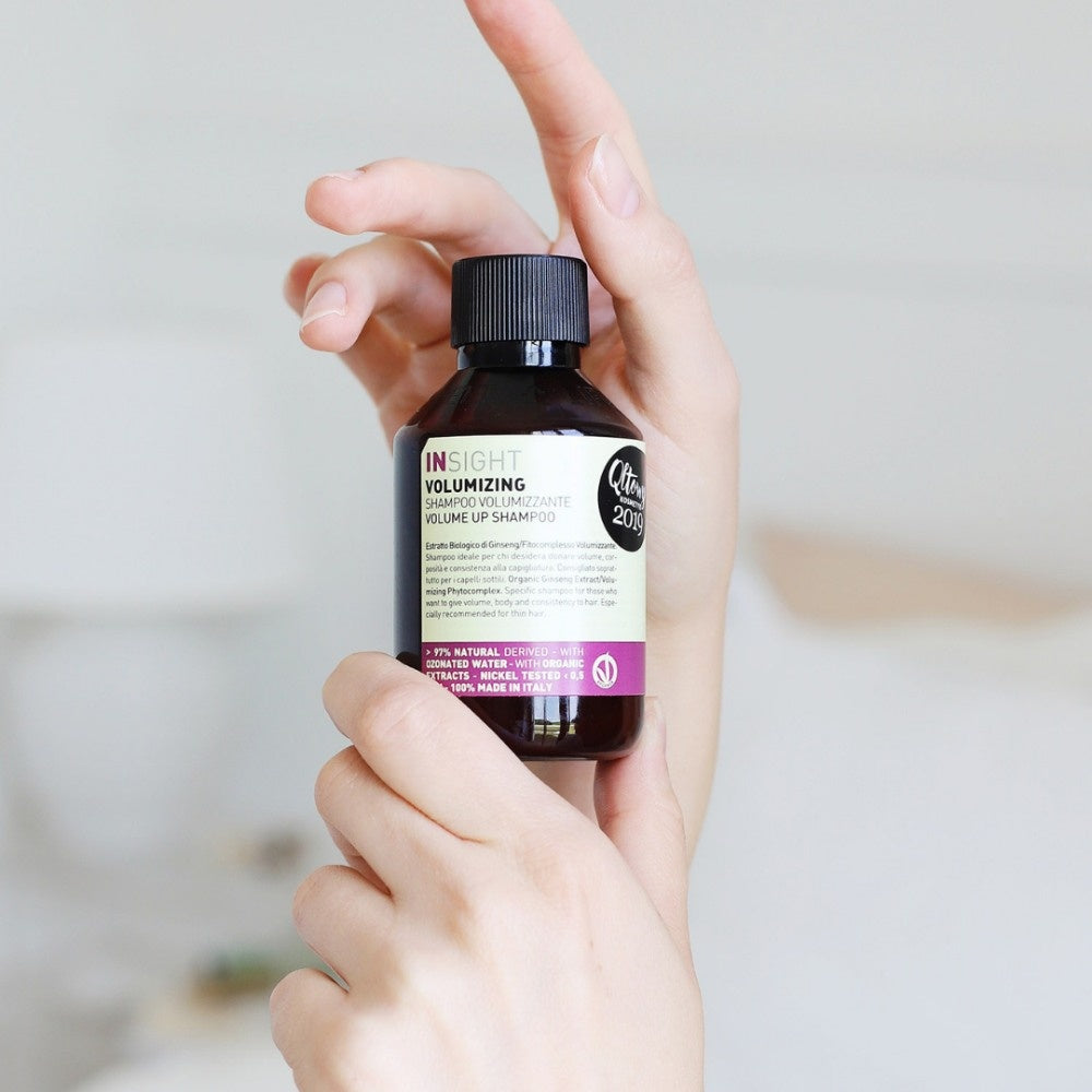 Insight Volume Up Shampoo Travel Size ist ein Reiseshampoo aus einer Linie, die speziell für feines und weiches Haar entwickelt wurde. Insight Volume Up Shampoo verleiht Ihrem Haar mehr Fülle und verhindert, dass dünnes Haar kraftlos aussieht. Das Shampoo verleiht Volumen vom Ansatz bis in die Spitzen. Es ist vegan und nickelgetestet. Es enthält Bio-Ginseng-Extrakt, Bio-Flohsamen-Extrakt und Bio-Weißnessel-Extrakt. Ein Shampoo, das Ihr Haar voller aussehen lässt – wer möchte das nicht?