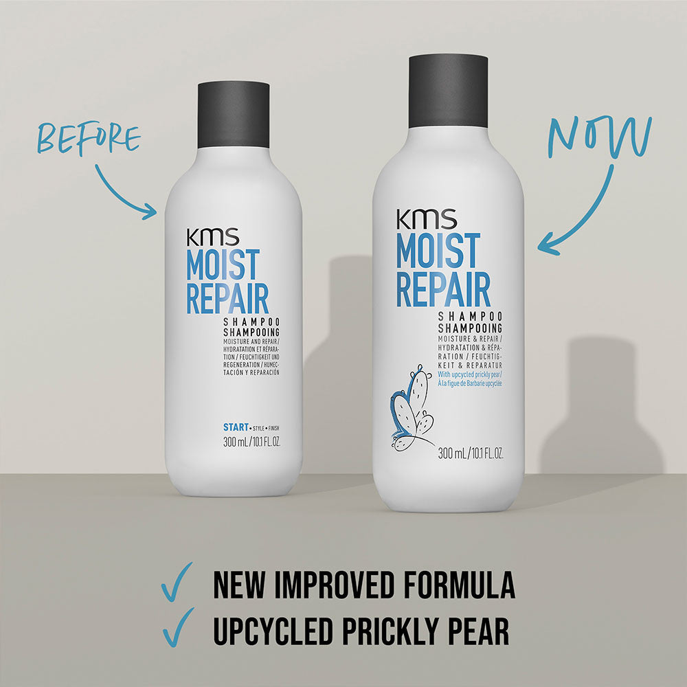 Das KMS Moist Repair Shampoo ist ein Shampoo, das das Haar mit Feuchtigkeit versorgt und Schäden im Haar repariert. Dieses Shampoo reduziert Haarbruch und stellt die natürliche Schutzschicht des Haares wieder her. Das Haar sieht nach der Anwendung des Moist Repair Shampoos wieder gesund und strahlend aus. Das Shampoo gibt dem Haar Feuchtigkeit zurück und ist für alle Haartypen geeignet. Es duftet nach Blumen, Früchten, Kräutern und Bäumen. Das Shampoo enthält einen UV-Filter und schützt vor schädlichen äußeren Einflüssen, ohne das Haar zu beschweren. Außerdem ist es alkoholfrei und frei von Parabenen und Silikonen.