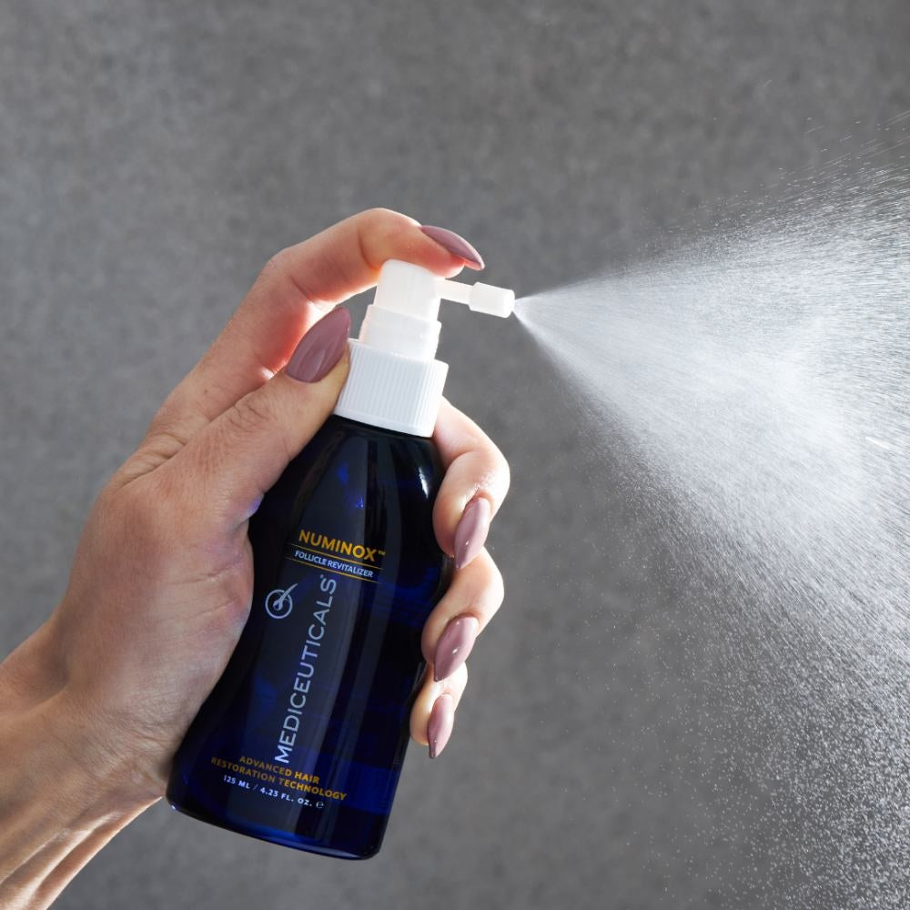Mediceuticals Numinox wirkt gegen übermäßigen Haarausfall und dünner werdendes Haar. Anwendbar u.a. bei androgenetischer Alopezie/Alopecia areata.Triaminocoptinol™ ist eine fortschrittliche dermatologische Formulierung für optimales Haarwachstum.Numinox aktiviert die Haarfollikel für neues Haarwachstum. Nutracell™ ist ein natürlicher Vitamin-B-Komplex.Estrolin™ ist ein natürlicher Anti-Androgen-DHT-Hemmkomplex, der gegen übermäßigen Haarausfall wirkt.
