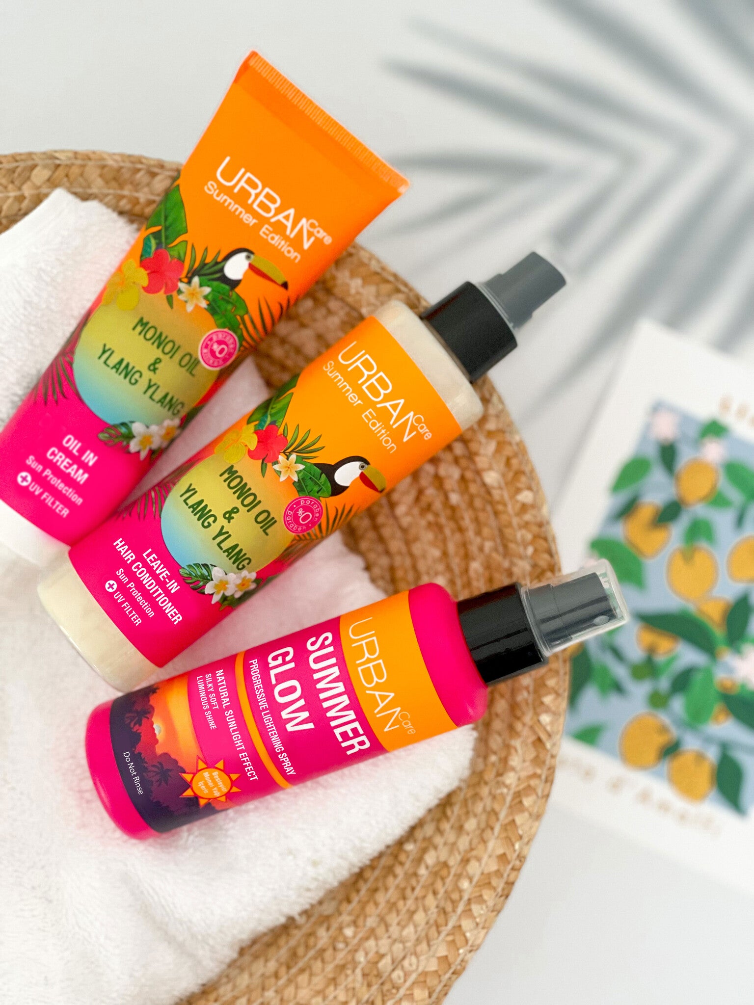 Urban Care Monoi & Ylang Ylang Leave In Conditioner ist ein praktisches Conditioner-Spray, das speziell für sonnengeschädigtes Haar entwickelt wurde. Er verstärkt den natürlichen Glanz des Haares und macht es leichter kämmbar. Der Leave-In Conditioner kann als Abschluss deiner Waschroutine verwendet werden, lässt sich aber auch jederzeit auf das trockene Haar auftragen. Dieser einzigartige Conditioner macht das Haar mit seiner innovativen Formel aus Monoi-Öl und Ylang-Ylang seidig weich. Hol dir den perfekten Glanz und die perfekte Pflege für (geschädigte) Locken mit der Summer Edition!