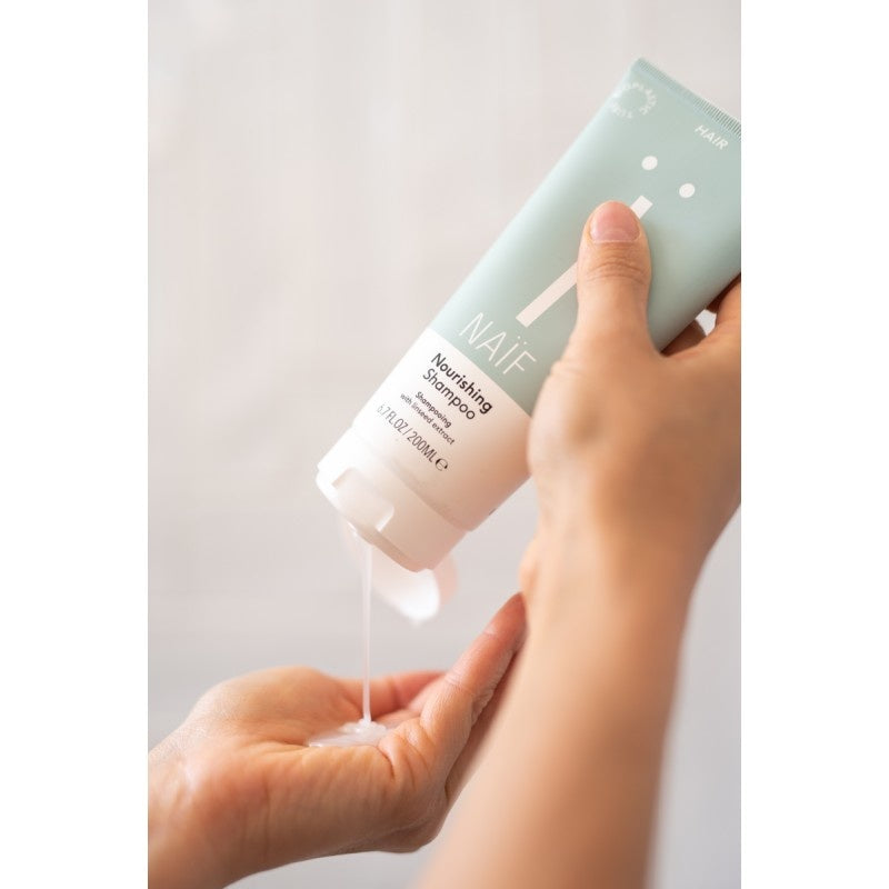 Naïf Nourishing Shampoo sorgt für sauberes Haar und enthält natürliche und pflegende Inhaltsstoffe. Die natürliche Formel mit Leinöl pflegt Ihr Haar und Ihre Kopfhaut. Es ist sulfatfrei, also weniger Schaum und mehr Reinigung.
