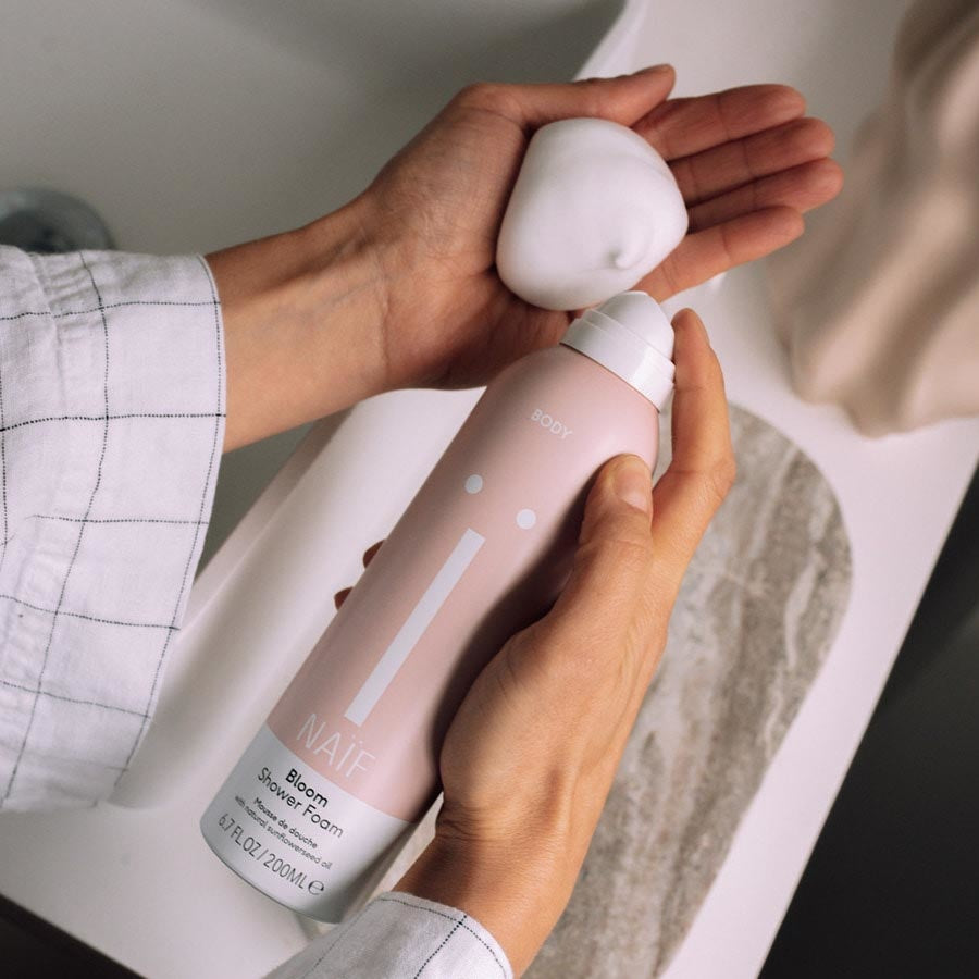 Wie verwende ich den Naïf Bloom Duschschaum?