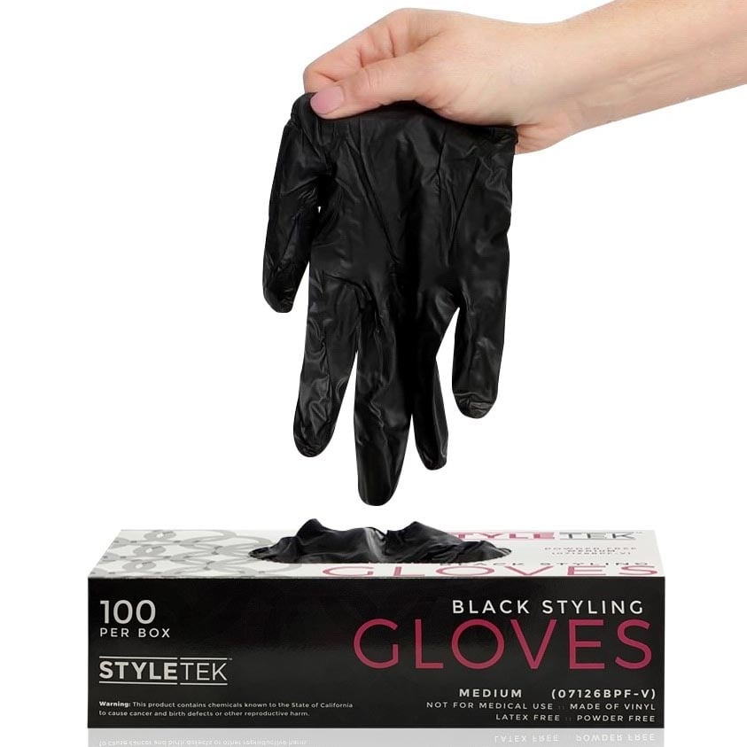 Die Styltek Vinyl Powder-Free Disposable Gloves Black sind aus einem weichen Material mit einer bequemen Passform und optimalem allergiefreiem Schutz. Die Handschuhe enthalten kein Latex und sind speziell für Friseure gemacht, um einen guten Tragekomfort zu gewährleisten. Dieses Produkt kommt aus Amerika, wo die Produkte sehr beliebt sind und ist nun endlich auch in den Niederlanden erhältlich.