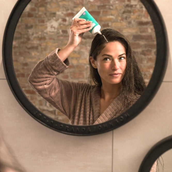 Nimm eine großzügige Menge der Maske auf deine Hände. Trage sie nach dem Haarewaschen auf die Kopfhaut auf und massiere sie in die Kopfhaut ein. Lass die Maske gut einwirken und spüle sie nicht aus. Für beste Ergebnisse empfehlen wir, die Maske 3-4 Mal pro Woche in Kombination mit dem Neofollics Exfoliating Shampooanzuwenden. Wir haben diese Kombination auch in einem praktischen Set erhältlich.