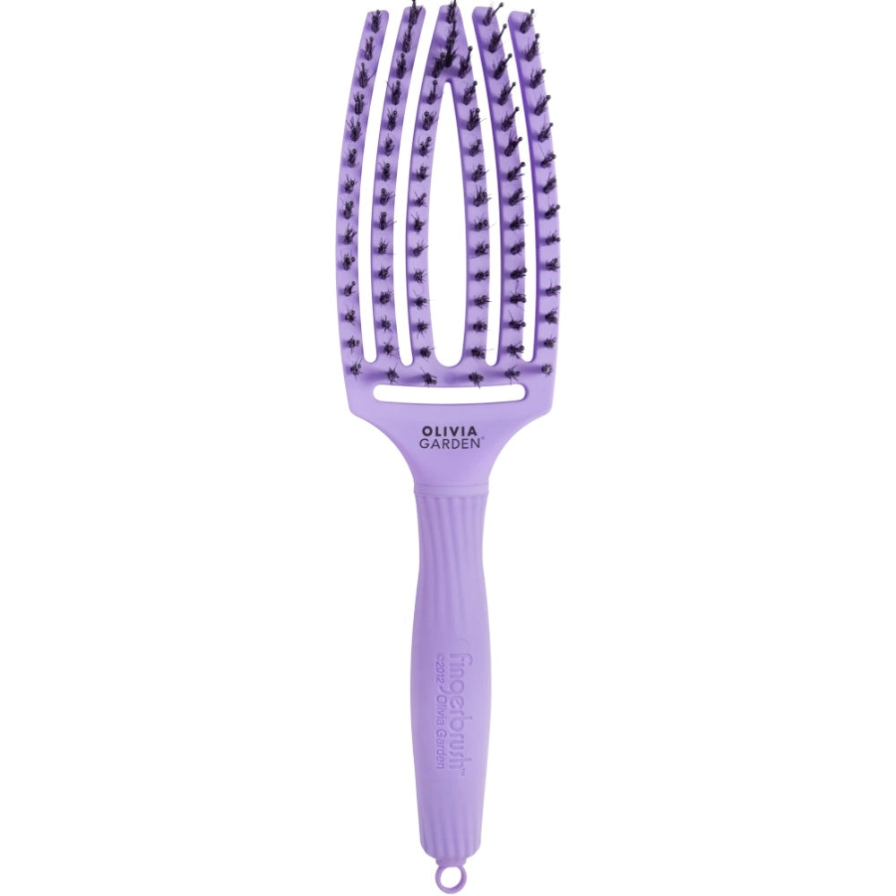Die Olivia Garden FingerBrush Lavender Combo Brush Medium hat ein cooles Design in Form einer Hand. Die spezielle gebogene Form der Bürste passt sich perfekt an die Kopfhaut an und sorgt so für mehr Komfort und perfekte Kontrolle. Die perfekte Bürste für verknotetes Haar. Durch die Kombination mit 100 % Wildschweinborsten, die Keratin abgeben, sorgt diese Bürste für tollen Glanz und Volumen. Außerdem werden die Haarschuppen geschlossen, was zu einer länger anhaltenden Farbe beiträgt und Austrocknung verhindert. Dank des optimierten Luftstroms wird das Haar schnell und effizient getrocknet, ohne dass es austrocknet oder überhitzt. Dank des leichten Materials und des ergonomischen Griffs liegt diese Bürste perfekt in der Hand, ohne Handgelenk, Arm und Schulter unnötig zu belasten.