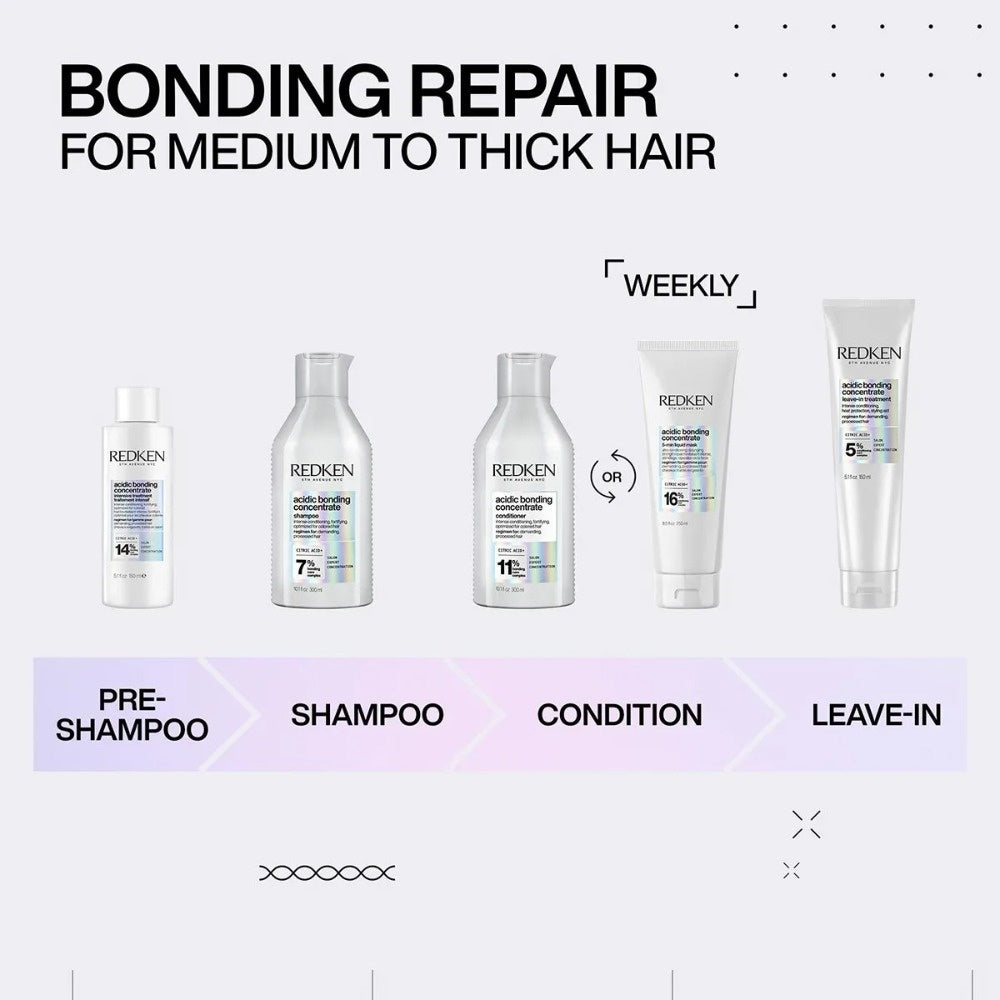 Um die besten Ergebnisse zu erzielen und besonders geschädigtes Haar wiederherzustellen, empfehlen wir, die Leave-In-Creme in Kombination mit Acidic Bonding Shampoo und Conditionerzu verwenden . Natürlich kannst du das Acidic Bonding Konzentrat Leave-In auch in Kombination mit anderen Produkten verwenden.