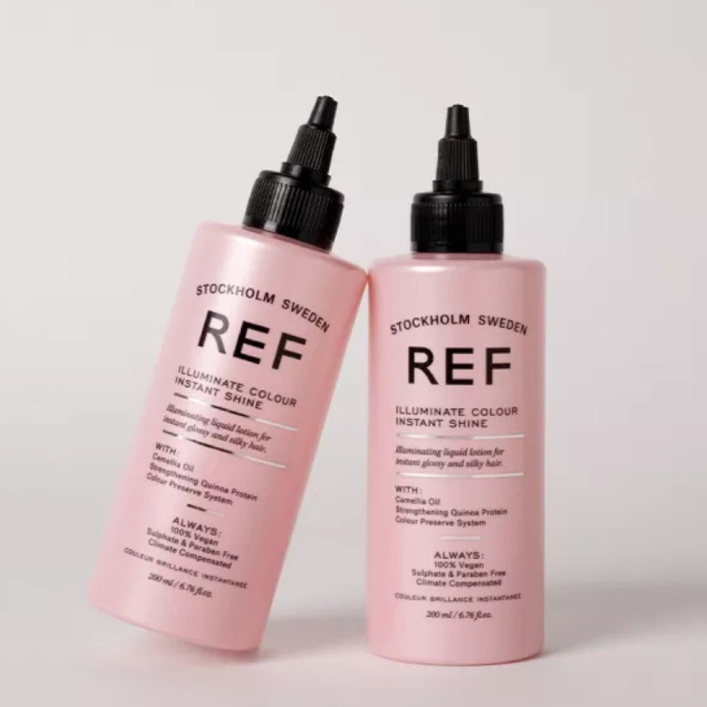 Das REF Illuminate Colour Shampoo und das REF Illuminate Colour Instant Shine enthalten pflegende Inhaltsstoffe wie Quinoa-Protein und Bio-Öle, die zur Farberhaltung beitragen und die Haarstruktur stärken. Das Instant Shine ist mit Inhaltsstoffen angereichert, die dem Haar schönen Glanz verleihen, ohne es zu beschweren.