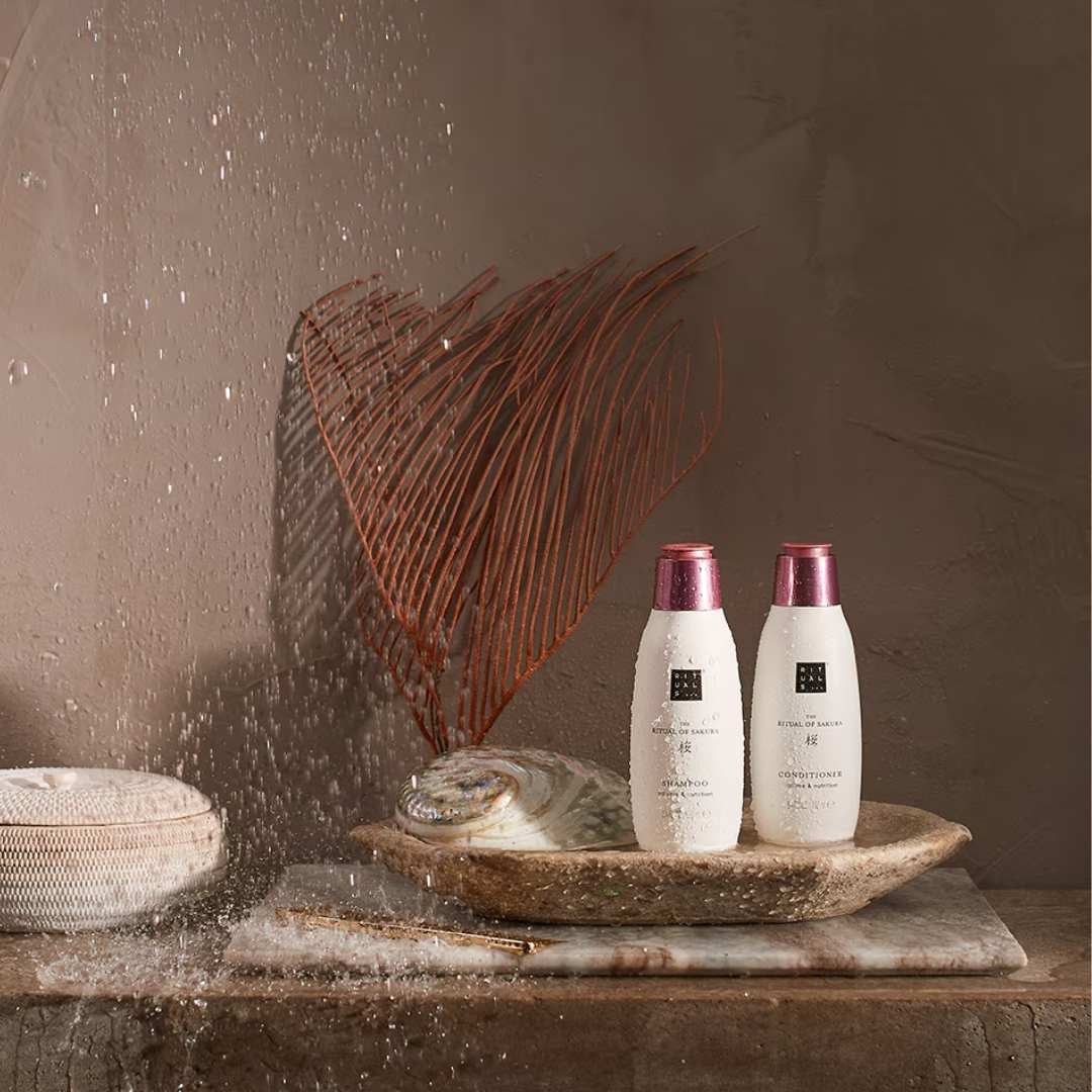 Schritt 1: Wasche dein Haar zunächst mit Shampoo, am besten mit dem Rituals Sakura Nourishing Shampoo.