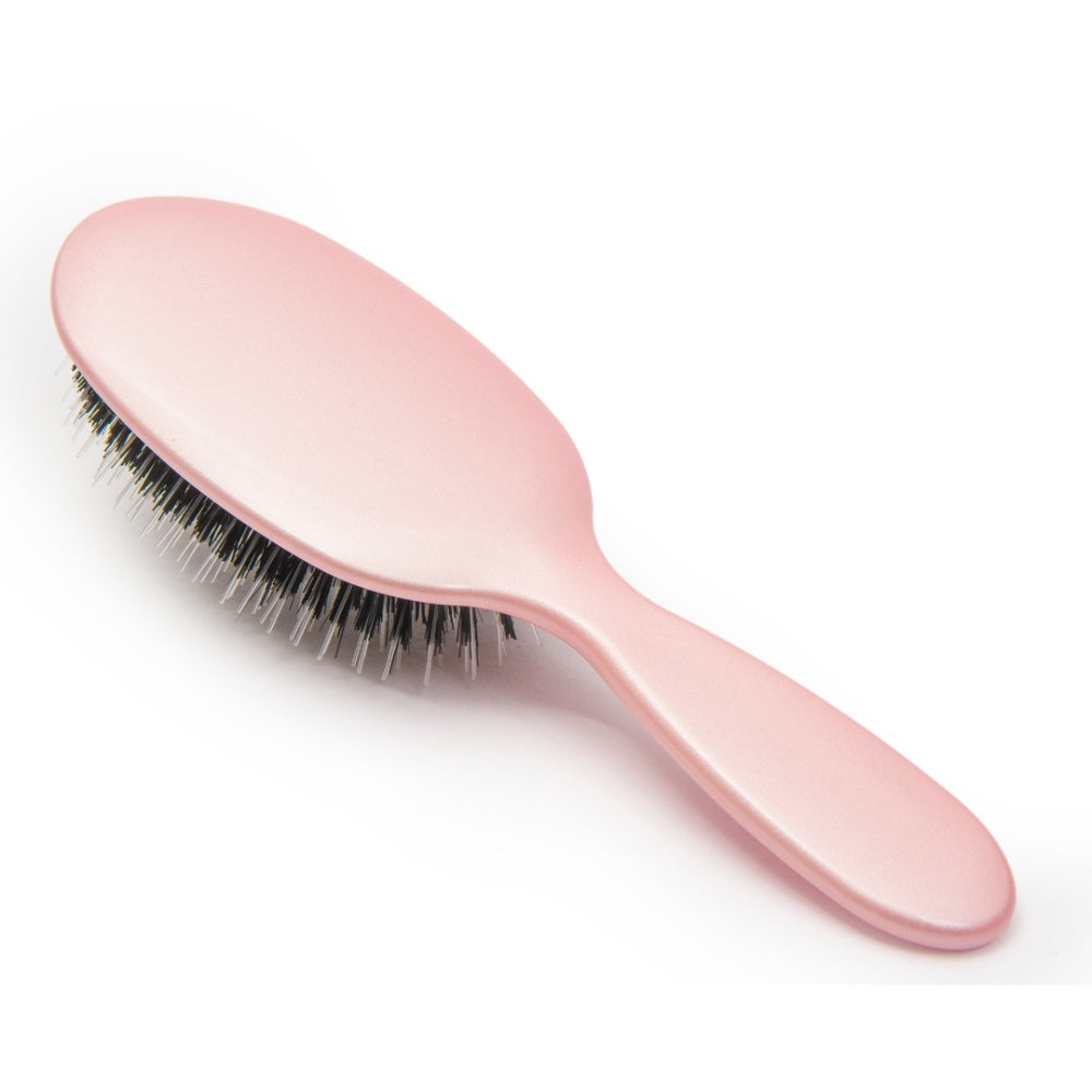 DieRock & Ruddle Haarbürste Rose Gold ist eine stilvolle, effektive Haarbürste, die das Haar pflegt und es schön aussehen lässt. Die Funktionsbürste hat ein elegantes rosa Design und hochwertige Wildschweinborsten. Diese Wildschweinborsten verleihen dem Haar einen seidigen Glanz. Mit der Bürste lässt sich dein Haar mühelos entwirren, während die Kopfhaut optimal gepflegt wird. Die Bürste ist für alle Haartypen geeignet und in zwei verschiedenen Größen erhältlich.
