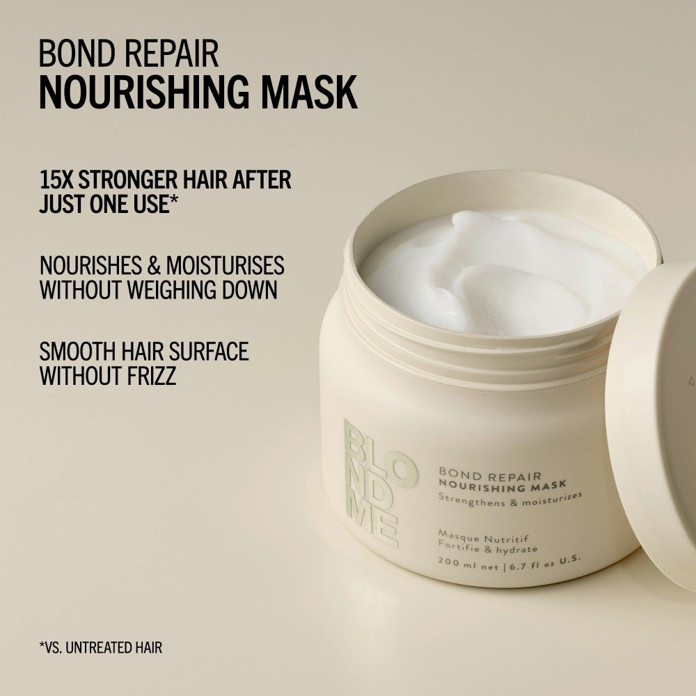 DieBlondMe Bond Repair Nourishing Mask von Schwarzkopf ist vollgepackt mit innovativen Technologien, die zusammenarbeiten, um dein Haar zu reparieren und zu schützen:
