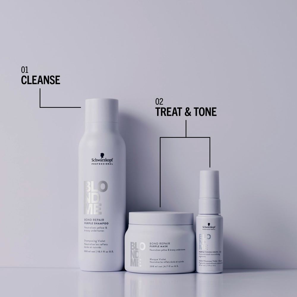 • Schwarzkopf BlondMe Purple Toning Set - Dieses Set enthält das Purple Shampoo und den Purple Conditioner, die perfekte Kombination, um dein blondes Haar frisch und gesund zu halten.