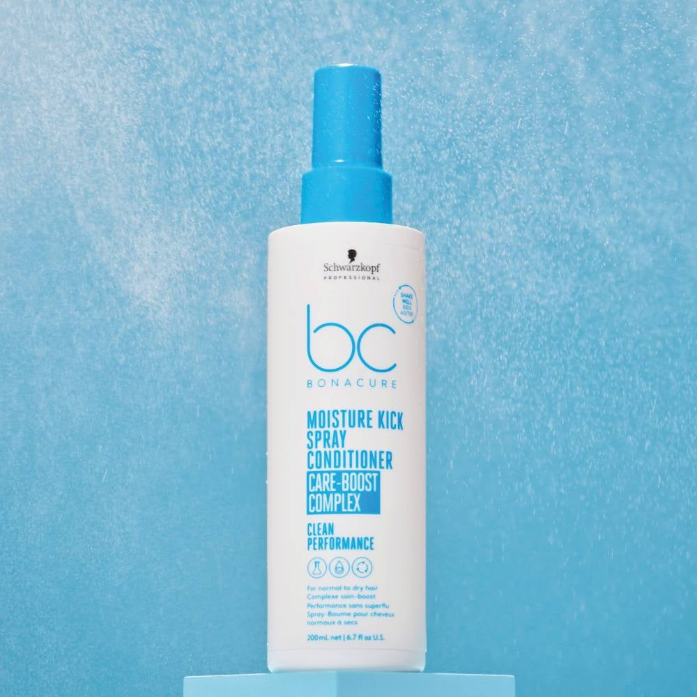 Der Schwarzkopf Bonacure Moisture Kick Spray Conditioner ist in Packungen zu 200 und 400 ml erhältlich.