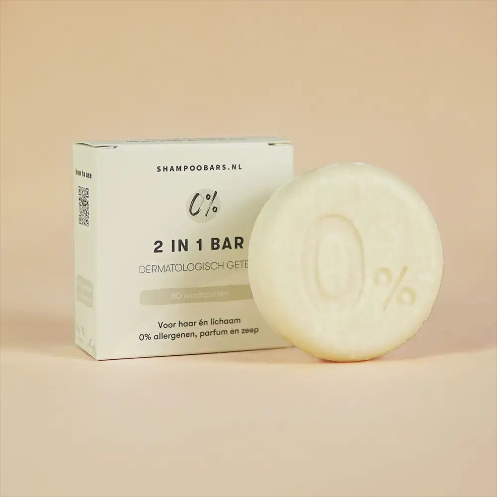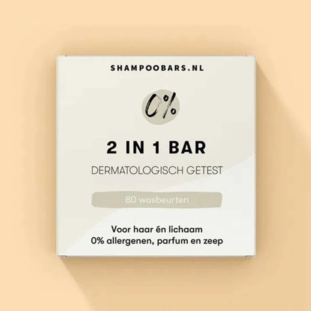 Der ShampooBars 0% 2-in-1 Bar ist die ultimative Kombination aus Shampoo und Conditioner in einem praktischen Riegel. Dieser vielseitige Riegel reinigt dein Haar gründlich und pflegt es tiefenwirksam, sodass es sich weich, glänzend und gesund anfühlt. Und das alles mit 0% Allergenen, Parfüm, Seife und Plastik. Damit ist der Riegel perfekt für alle mit empfindlicher Haut!