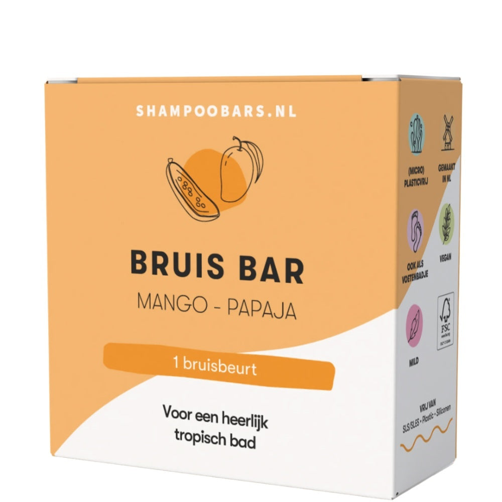 Der ShampooBars Bruis Bar Mango - Papaya hinterlässt deine Haut seidenweich, wunderbar duftend und völlig entspannt. Ein tropischer Wellness-Moment in deinem eigenen Badezimmer, jedes Mal!