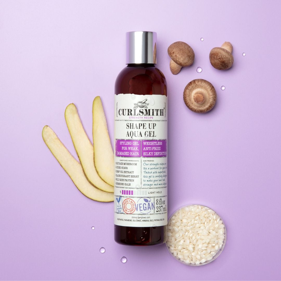 Das Shape Up Aqua Curl Gel von Curlsmith ist Ihr idealer Partner, wenn Sie luftige, definierte Locken ohne Knirschen suchen.