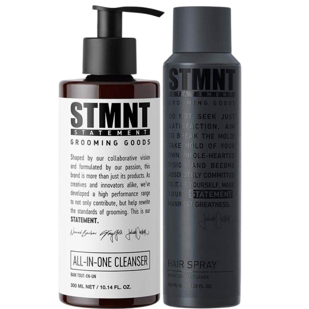 STMNT Care, Style Go! Verwende den All In One Cleanser für die komplette Reinigung und Pflege von Kopf bis Fuß. Ein Produkt für ein komplett frisches Gefühl. Dank des STMNT Haarsprays ist deine Frisur immer sicher und du behältst die volle Kontrolle. Behalte die Kontrolle und setze ein STATEMENT.
