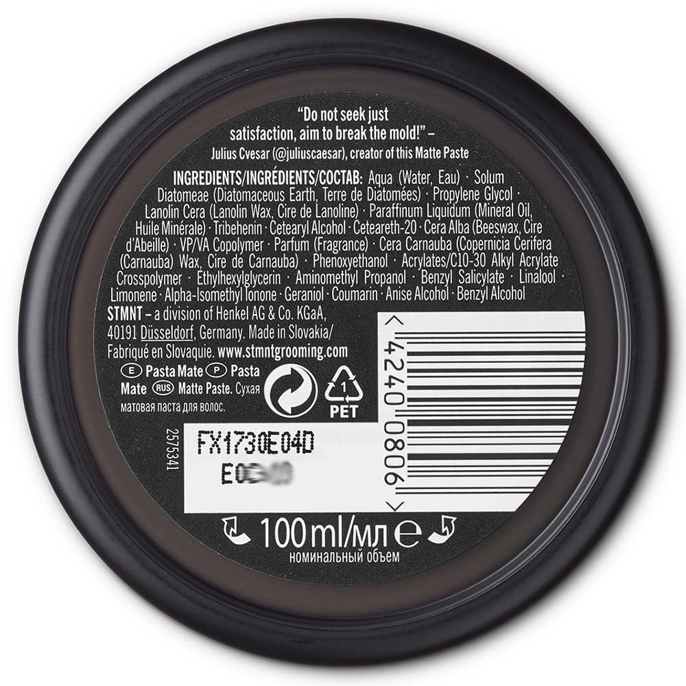 STMNT Grooming Matte Paste ist das Stylingprodukt mit einem supermatten Effekt. Trage die Matte Paste auf das feuchte oder trockene Haar auf, um ein einfaches Styling mit starker Kontrolle und Halt zu erzielen. Die nicht fettende Formel sorgt für eine trockene Definition mit einer lang anhaltenden Textur und einem matten Finish. Mit dem charakteristischen Premium-Duft von Julius Cvesar aus Kokosnuss und Sandelholz mit einem Hauch von Iris startest du nicht nur mit einem frischen Look in den Tag, sondern auch mit einem frischen Duft.