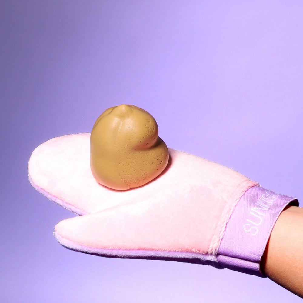 Tragen Sie das Selbstbräunungsmousse auf gereinigter Haut auf. Vor dem Bräunen empfiehlt es sich, die Haut zu peelen und Haare zu entfernen. So erzielen Sie ein schönes, gleichmäßiges Ergebnis. Tragen Sie das Selbstbräunungsmousse anschließend mit einem Bräunungshandschuh auf . Sie können den kleineren Handschuh für kleine Bereiche wie Ihr Gesicht und den größeren Handschuh für den Rest Ihres Körpers verwenden. Verteilen Sie das Mousse gleichmäßig auf Ihrem Körper und lassen Sie es gut einziehen. Wir empfehlen, den Selbstbräuner abends aufzutragen, um Flecken auf Ihrer Kleidung zu vermeiden. Die Bräune hält bis zu 7 Tage. Für eine intensivere Bräune können Sie die Bräune am nächsten Tag durch eine weitere Schicht Selbstbräuner verstärken.