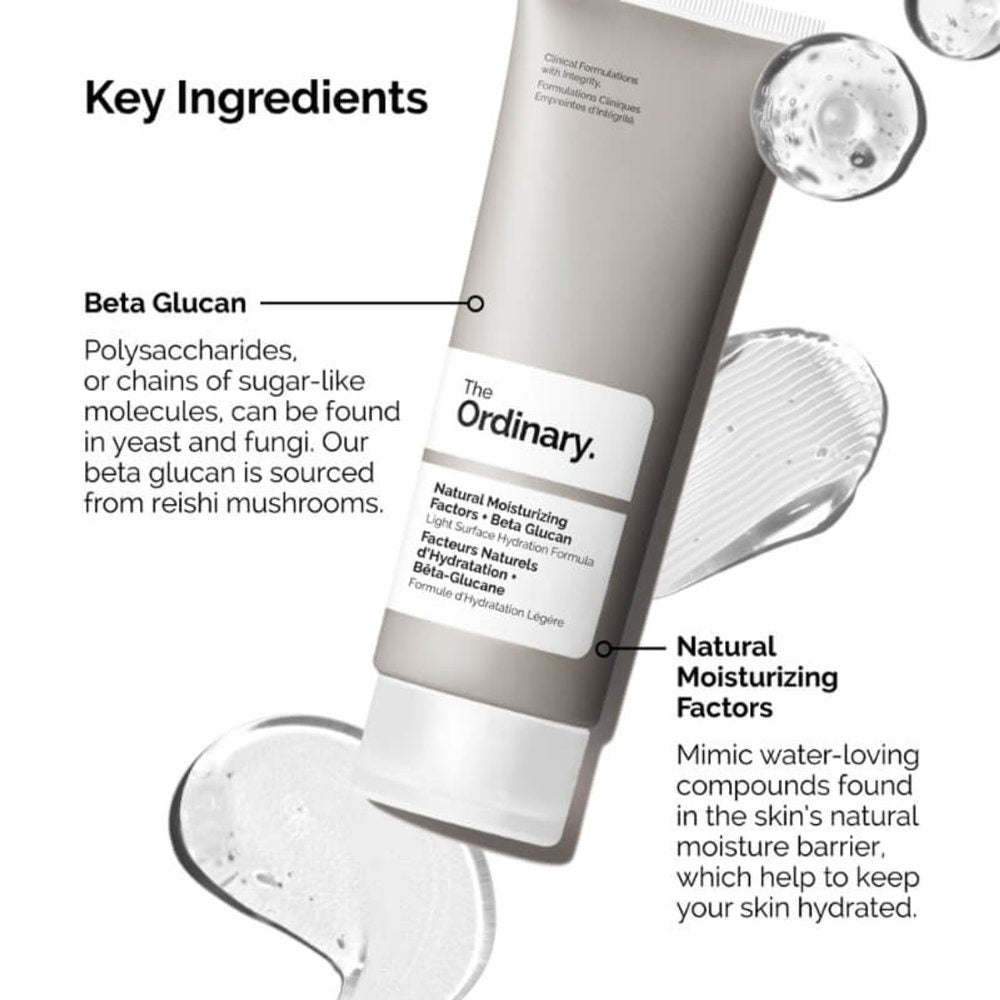 The Ordinary Natural Moisturising Factors Cream + BETA ist ein leichtes Gel mit einer feuchtigkeitsspendenden Formel. Das Gel spendet nach einmaligem Auftragen sofort Feuchtigkeit. Mit einer Mischung aus natürlichen Feuchtigkeitsfaktoren, Beta-Glucan und Ceramiden stärkt es außerdem die natürliche Barriere der Haut. Das Beta-Glucan in der Formel ist ein wirksames Feuchthaltemittel, das hilft, die Feuchtigkeit zu speichern. Dadurch werden die anderen Inhaltsstoffe der Formel unterstützt, um die Haut sofort mit Feuchtigkeit zu versorgen und die Barriere zu stärken. Die nicht fettende Formel ist ideal für alle Hauttypen, auch für empfindliche Haut, und ist besonders für fettige Haut und Mischhaut geeignet.