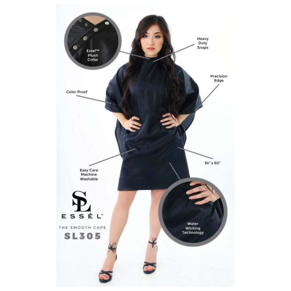 Das Essel The Smooth Cape ist ein Spitzenreiter unter den Friseurumhängen. Hier sind seine wichtigsten Eigenschaften: