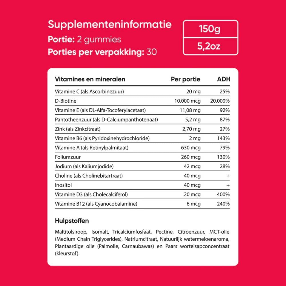 • Biotin - Unterstützt das Haarwachstum, gesunde Haut und das Nervensystem.