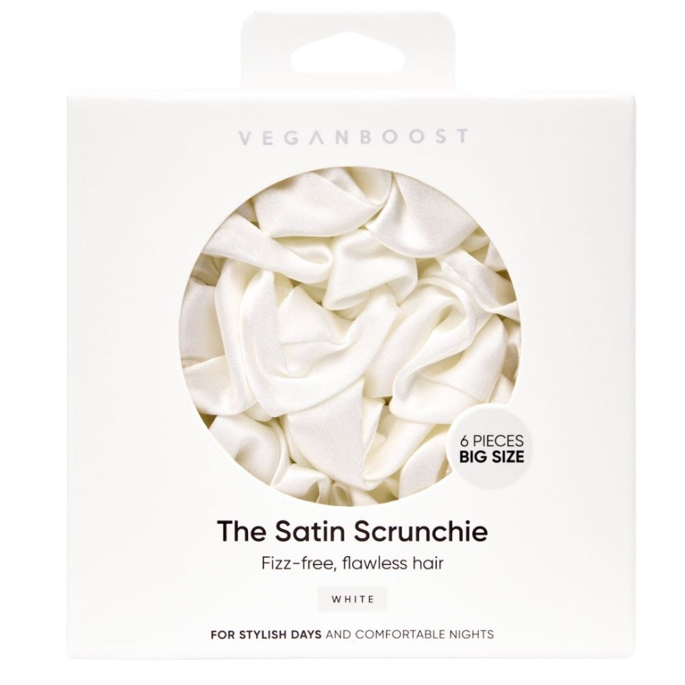 Veganboost Satin Scrunchie weiß Groß Formaat - 6pcs