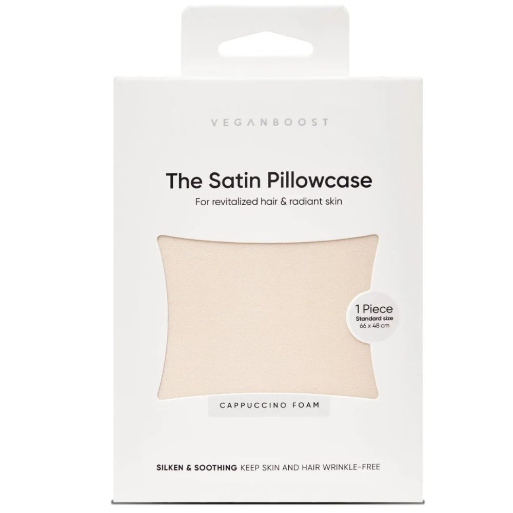 Der Veganboost Satin Pillowcase Cappuccino Foam macht dein Haar geschmeidiger, gesünder und weniger kraus. Deine Haut wird sich morgens frischer und hydratisierter anfühlen, ohne Schlaffalten. Ein Schönheitsschub, während du schläfst!