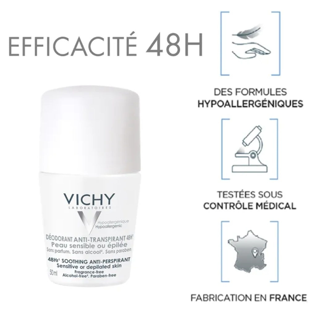 Vichy Antitranspirant-Deodorant-Roller für empfindliche Haut – 50 ml