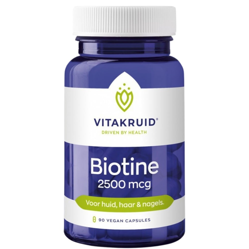 Das vielseitige Nahrungsergänzungsmittel Vitakruid Biotin 2500 mcg pflegt die Haut, trägt zu stärkeren Nägeln bei und hilft, kräftiges, glänzendes Haar zu erhalten. Kein Wunder, dass Biotin auch das Schönheitsvitamin genannt wird! Biotin kommt natürlich in unserer Nahrung vor, aber um Ihrem Körper unter die Arme zu greifen, können Sie dieses Nahrungsergänzungsmittel in Ihre tägliche Routine integrieren. Biotin unterstützt auch das Energieniveau. Der Nährstoff ist an der Freisetzung von Energie aus der Nahrung beteiligt. Natürlich verwendet Vitakruid die effizienteste Form von Biotin, D-Biotin. Dies ist die natürlichste und organischste Form von Biotin und wird daher am besten vom Körper aufgenommen. Biotin spielt auch eine wichtige Rolle für die geistige Leistungsfähigkeit. Beispielsweise wirkt sich Biotin positiv auf das Nervensystem, die Gehirnfunktion, die Lernfähigkeit und die Konzentration aus.