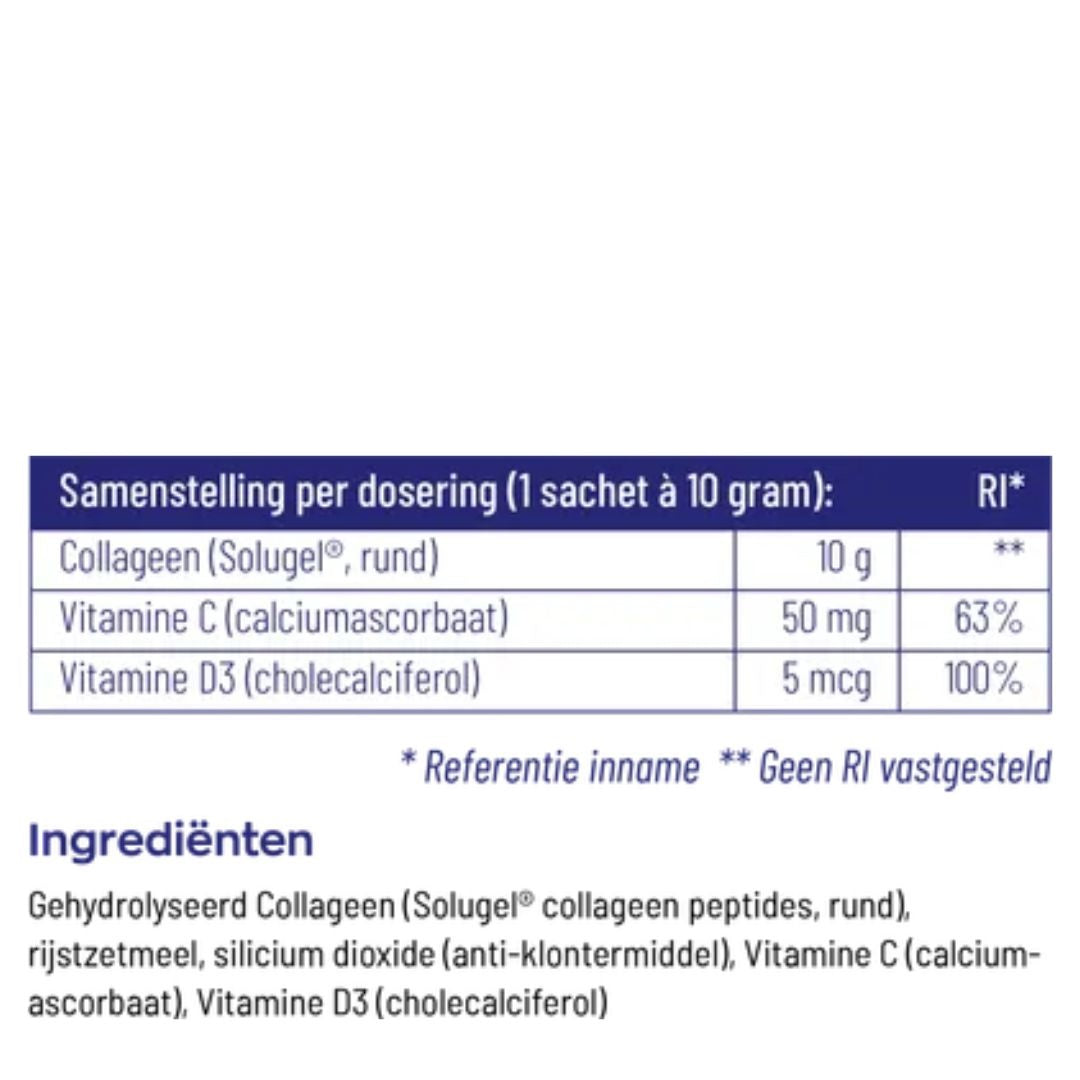 Vitakruid Collagen Solugel Sachets + ist ein hochwertiges Kollagenpulver mit Vitamin C und D, speziell entwickelt für die natürliche Hautverjüngung. Diese praktischen Sachets enthalten 99 % reines Kollagen Typ I, den Typ, den Ihre Haut, Haare, Nägel und Ihr Bindegewebe am meisten benötigen. Dank der zusätzlichen Vitamine C und D erhält Ihr Körper zusätzliche Unterstützung bei der Aufnahme und Produktion von Kollagen. Und das Beste daran? Sie können sie einfach in Ihre Tasche stecken!