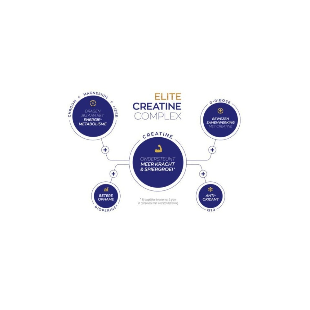 Vitakruids Elite Creatine Complex ist mehr als nur Kreatin! Er wurde sorgfältig mit zusätzlichen Inhaltsstoffen formuliert, die zu einer verbesserten Aufnahme und Wirksamkeit beitragen. Dies sind die wichtigsten Merkmale :