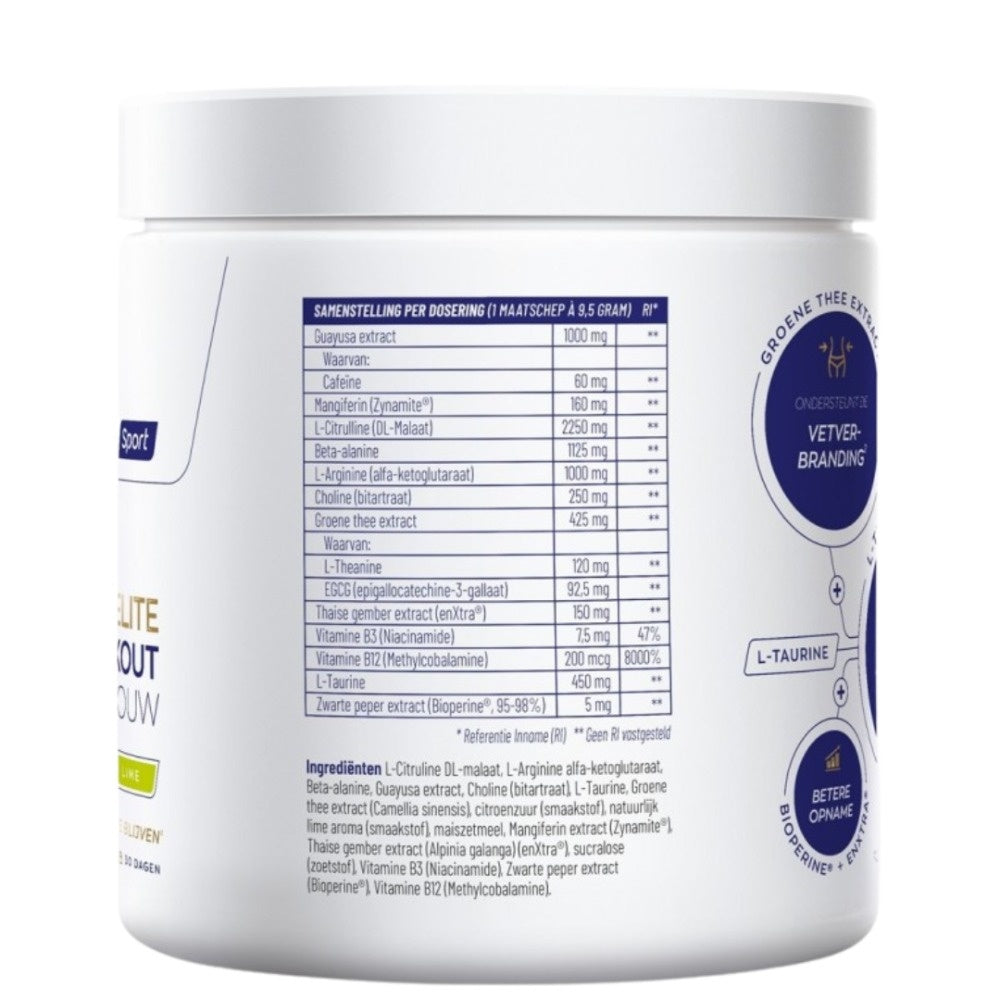 L-Citrulin-DL-Malat, L-Arginin-Alpha-Ketoglutarat, Beta-Alanin, Guayusa-Extrakt, Cholin (Bitartrat), L-Taurin, Grüntee-Extrakt (Camellia sinensis), Zitronensäure (Aroma), natürliches Limettenaroma (Aroma), Maisstärke, Mangiferin-Extrakt (Zynamite®), Thai-Ingwer-Extrakt (Alpinia galanga) (enXtra®), Sucralose (Süßstoff), Vitamin B3 (Niacinamid), Schwarzer Pfeffer-Extrakt (Bioperine®), Vitamin B12 (Methylcobalamin).