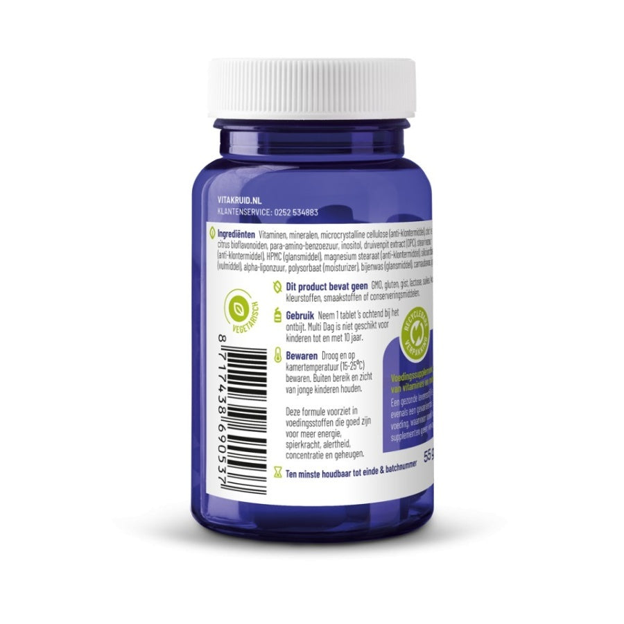 Das Vitakruid Multi Day Multivitamin berücksichtigt Ihren Biorhythmus und wurde speziell für den täglichen Bedarf Ihres Körpers entwickelt. Die Formel enthält eine hohe Dosis Vitamin B12, das Ihr natürliches Energieniveau steigert. Vitamin C fördert die Konzentration. Für Vitamin B6 wurde die sicherste Form, P-5-P, gewählt. Das enthaltene OPC schützt vor freien Radikalen und unterstützt die Blut- und Herz-Kreislauf-Funktion. Vor allem aber verbessert OPC auch die Aufnahme anderer Nährstoffe. OPC rundet die Multi Day-Formel ab!