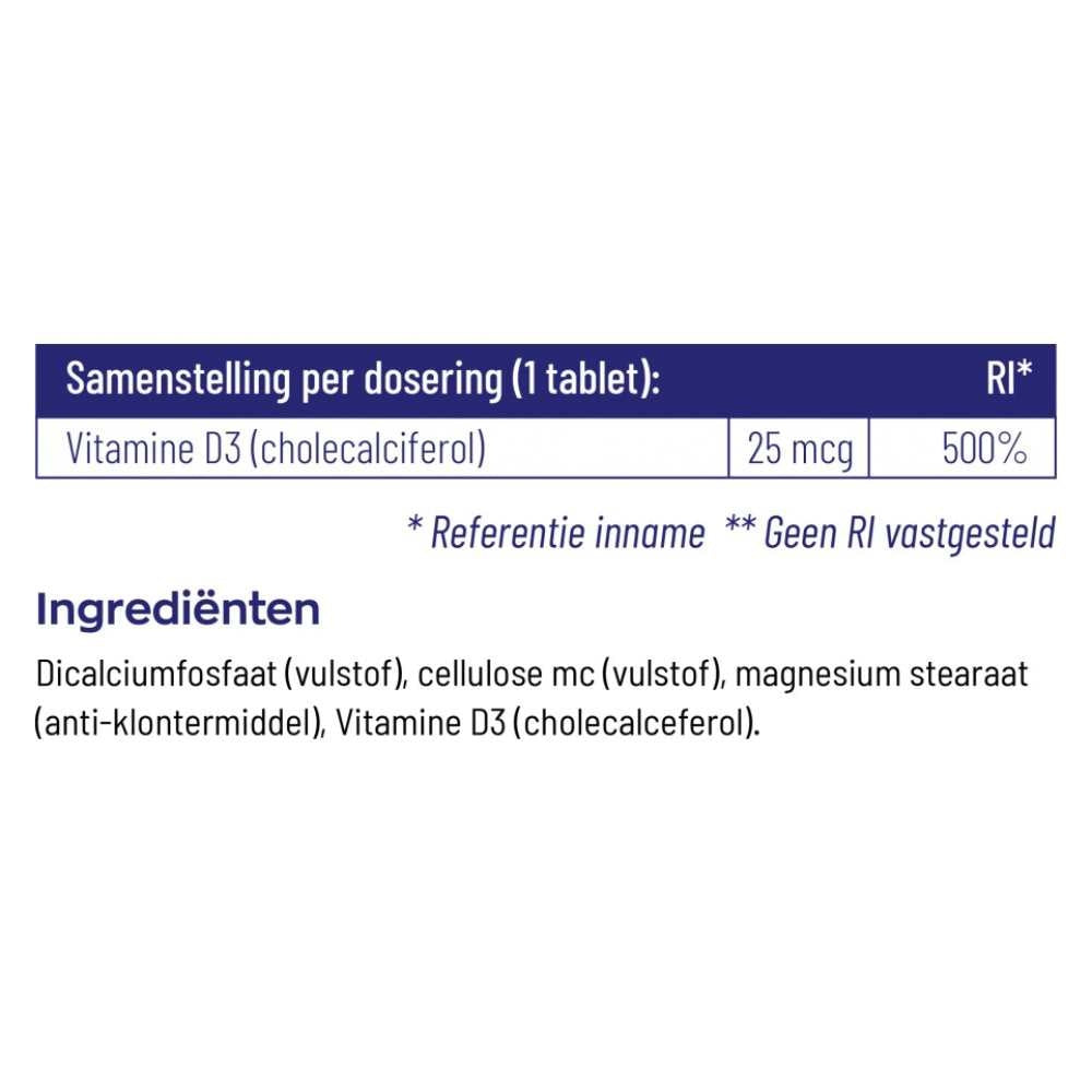 Dicalciumphosphat (Füllstoff), Cellulose MC (Füllstoff), Magnesiumstearat (Trennmittel), Vitamin D3 (Cholecalciferol).