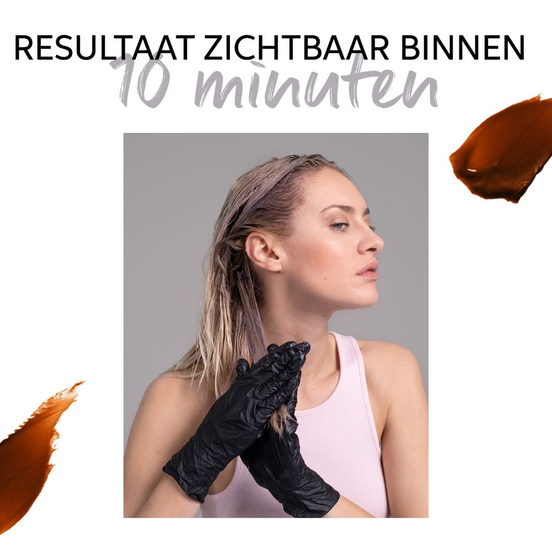 Achte darauf, dass du Handschuhe trägst, wenn du diese Maske verwendest. Denn die Maske kann Flecken auf deinen Händen hinterlassen. Trage eine großzügige Menge der Maske auf das handtuchtrockene, gewaschene Haar auf. Lass die Maske dann je nach gewünschter Farbintensität 10 Minuten einwirken. Spüle die Maske gut aus und style dein Haar. Jetzt bist du startklar!