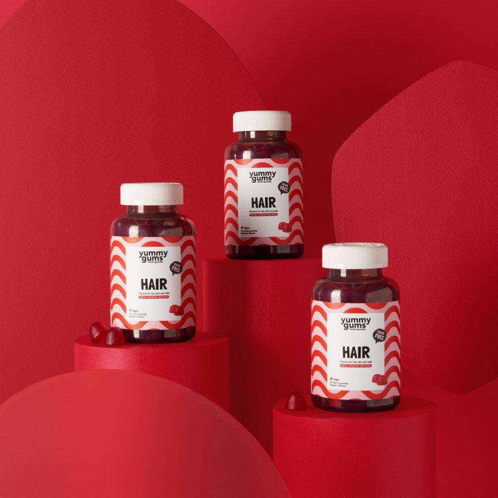 Gesundes Haar beginnt von innen! Die Yummygums Hair Gummies enthalten Biotin und Selen, die das Haarwachstum und die Haarstärke fördern. Die zuckerfreien Bonbons sind leicht einzunehmen und haben einen leckeren Himbeergeschmack. Außerdem sind sie vegan, halal, laktosefrei und glutenfrei, so dass jeder von den Vorteilen dieser Haargummis profitieren kann. Der Haargummi hat nicht nur positive Auswirkungen auf die Haargesundheit, sondern fördert auch eine strahlende, elastische Haut und starke Nägel. Dank dieses Schönheitsvitamins wird dein Haar bald glänzend, gesund und widerstandsfähig aussehen und weniger anfällig für Haarbruch und Spliss sein. Gönnst du deinem Haar diesen Power-Boost?