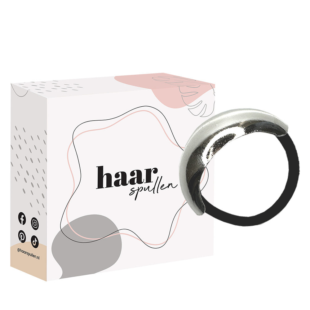 Dieses silberne Haargummi strahlt dank des stilvollen silbernen Details Eleganz aus. Es ist ein wunderschönes Statement-Piece, das dein Outfit zu jedem Anlass vervollständigt. Das silberne Haargummi verfügt über eine hochwertige Elastizität und bietet einen festen Halt.
